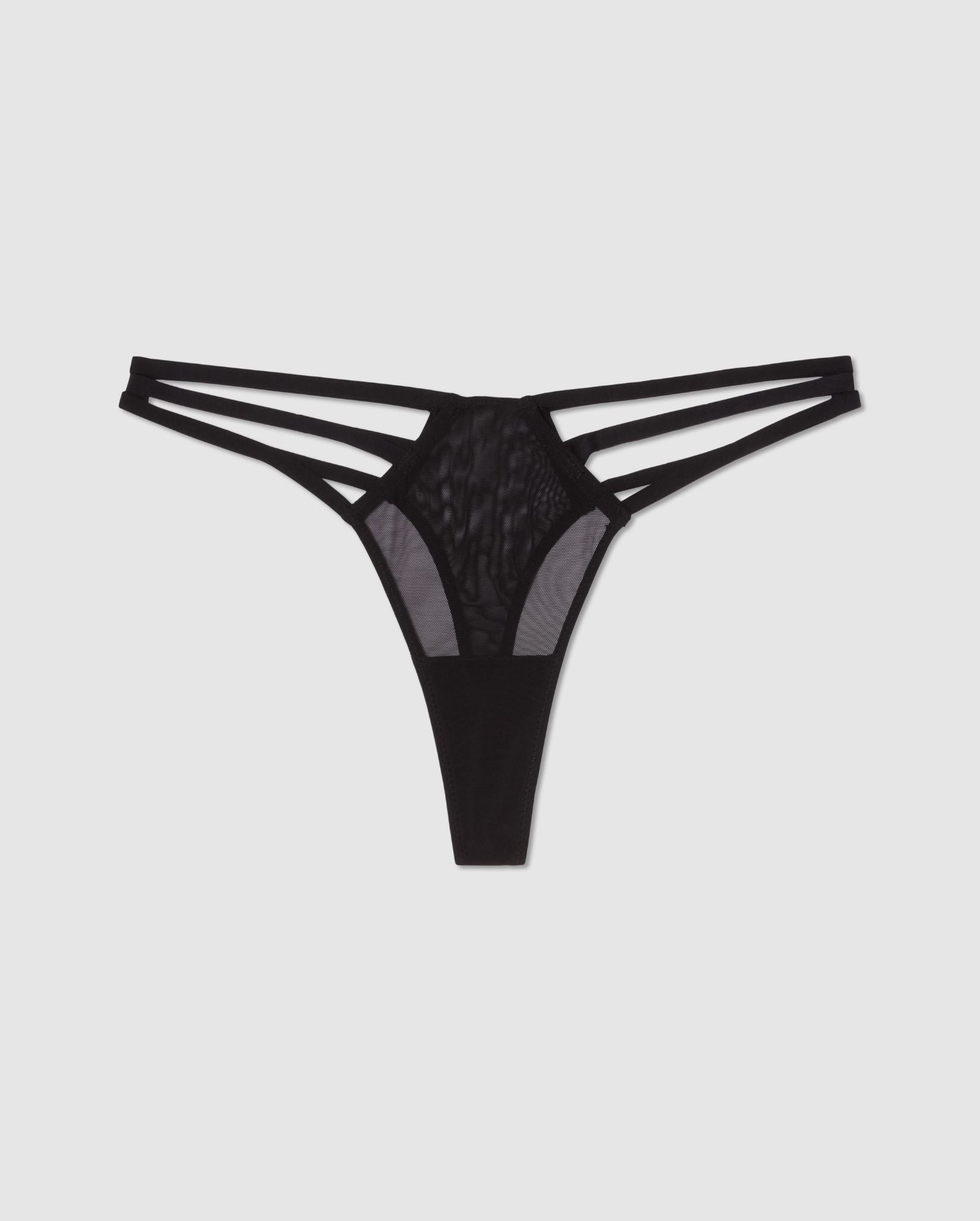 - Mid-rise thong that can be worn high in the waist or lower on the hips
